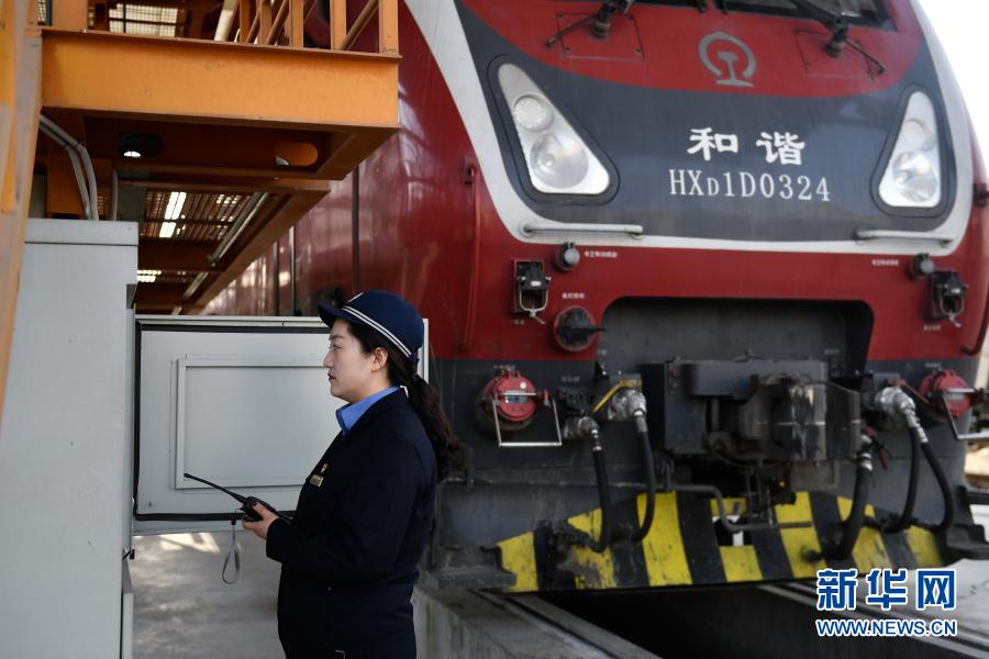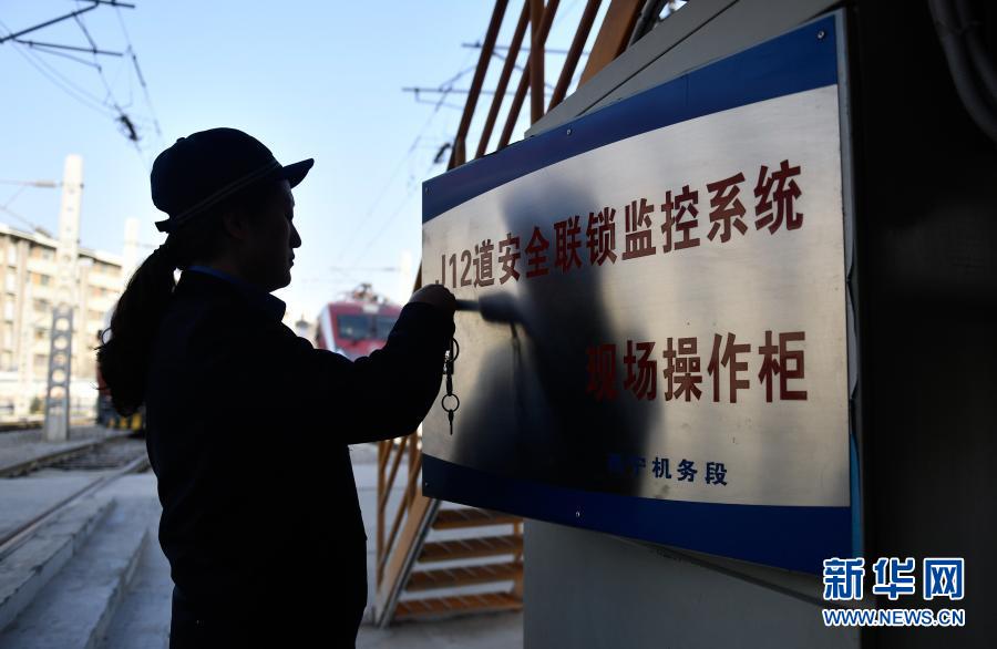 2月24日,在青藏鐵路公司西寧機(jī)務(wù)段整備車(chē)間,隔離開(kāi)關(guān)班組成員李娟在工作中。新華社記者 張曼怡 攝