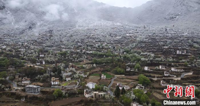 山坡上一幢幢藏式樓房灑落在梨花、綠樹(shù)叢中美如畫(huà)。劉忠俊 攝