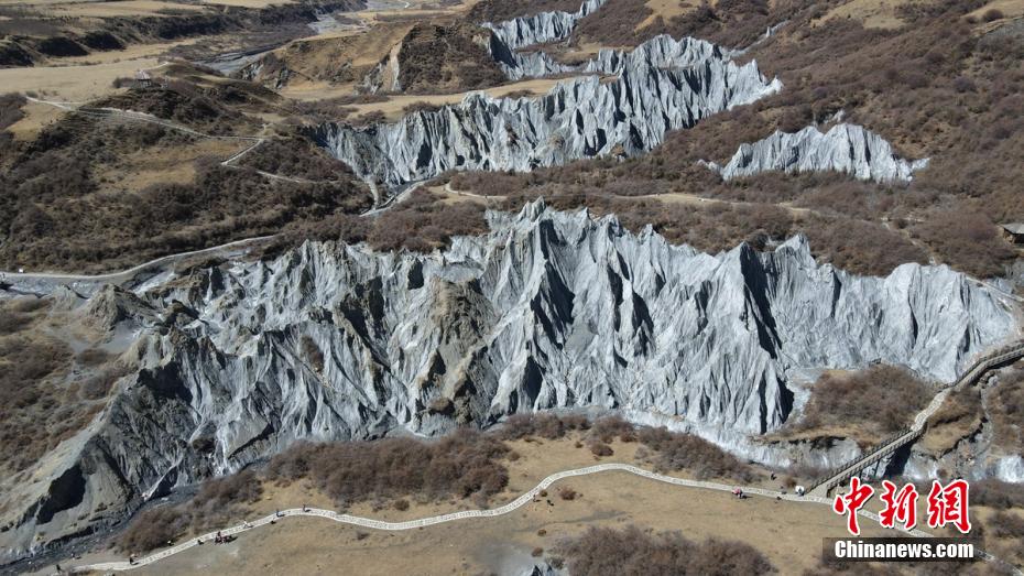 3月24日,四川省甘孜藏族自治州道孚縣八美鎮(zhèn)墨石公園吸引了不少游人前往打卡拍照。海拔約3400米的墨石公園總面積約5平方公里,埋藏于地下的巖土經(jīng)雨水長(zhǎng)年沖刷、風(fēng)化等,自然形成了千姿百態(tài)的獨(dú)特地質(zhì)景觀。因“八美土石林”含鈣鹽,受空氣濕度影響,干燥季節(jié)呈淺灰、淺藍(lán)灰色,濕潤(rùn)季節(jié)呈蒼墨色。劉忠俊 攝