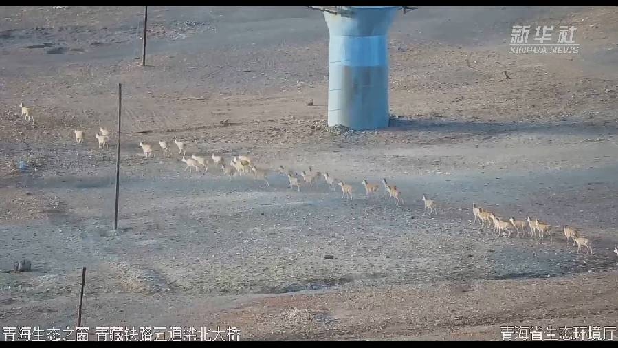 近日,青海省生態(tài)環(huán)境廳的科研人員通過青?!吧鷳B(tài)之窗”遠(yuǎn)程網(wǎng)絡(luò)視頻觀測系統(tǒng)觀測可可西里地區(qū)時(shí),捕捉記錄了藏羚羊靈巧通過青藏鐵路五道梁北大橋、在無人區(qū)遷徙等珍貴畫面。
