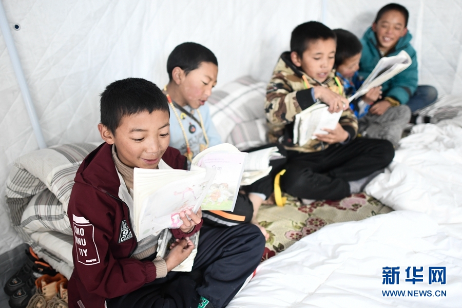 “帳篷里挺暖和,老師們都陪著我們,現在很安心,不覺得害怕?!本拍昙壱话鄬W生扎西東周說。