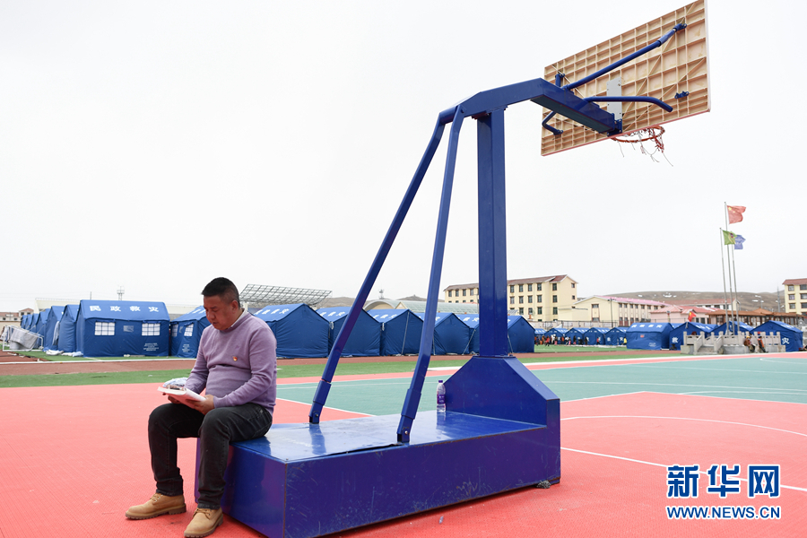5月23日夜間,李加才讓在瑪多縣民族寄宿制中學(xué)操場(chǎng)的學(xué)生營(yíng)地巡查。新華社記者 張龍 攝