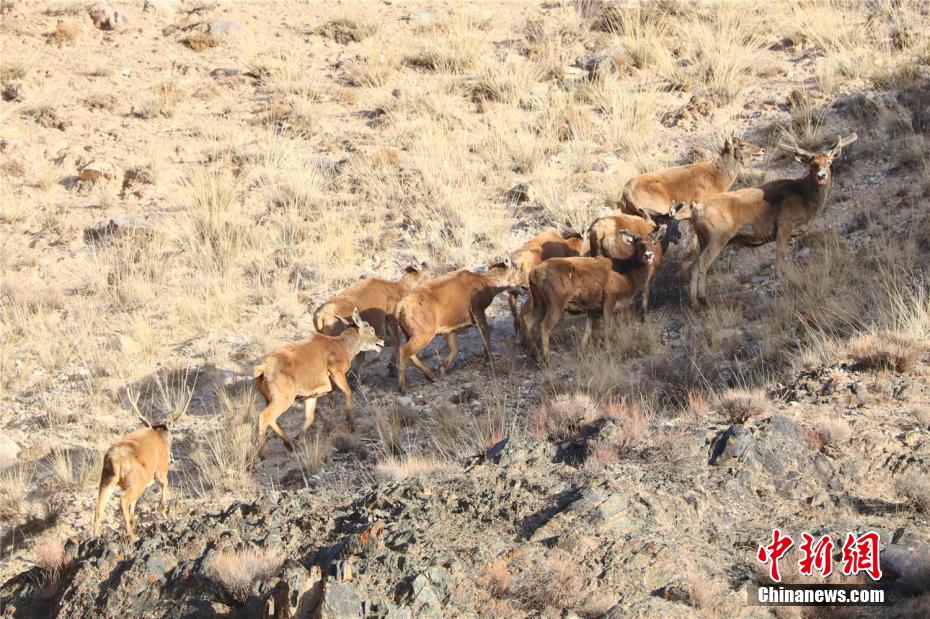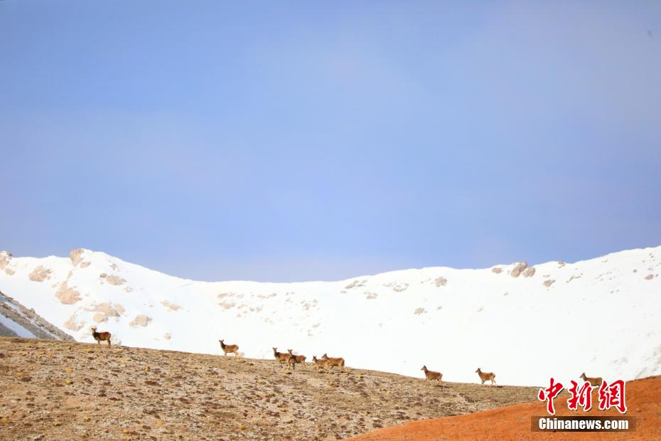 近日,甘肅張掖市祁連山國(guó)家公園內(nèi)野生動(dòng)物“組團(tuán)”出沒(méi)的難得一見(jiàn)畫(huà)面。郎文瑞 攝