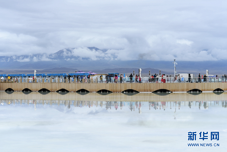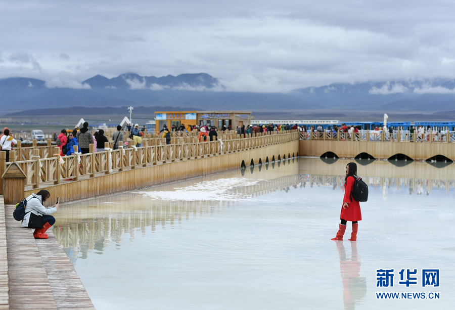 游客在茶卡天空壹號景區(qū)內游覽。新華網(wǎng) 卡婭梅朵 攝