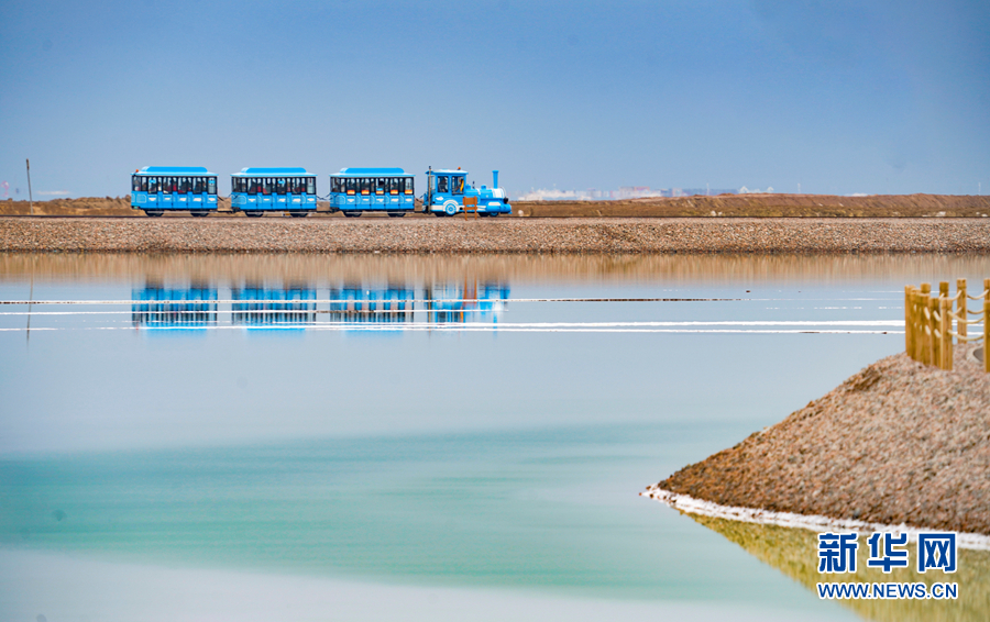 一列觀光火車從茶卡天空壹號景區(qū)內經(jīng)過。新華網(wǎng) 宋忠勇 攝