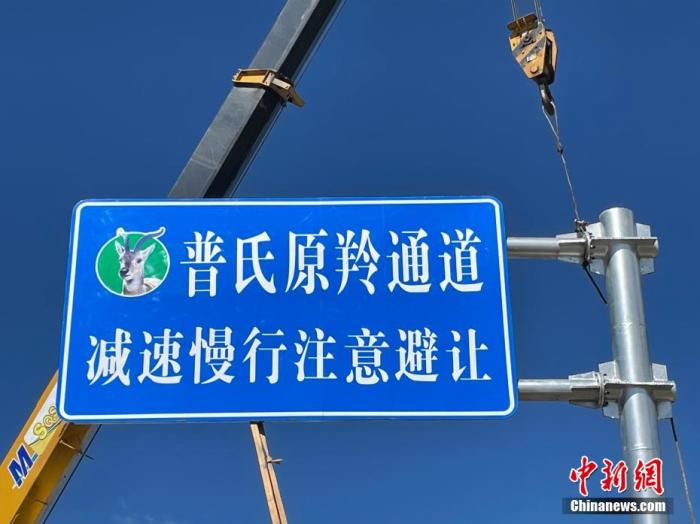 圖為7月2日,青海省海北州剛察縣新設立的普氏原羚通道警示牌。青海省海北州人民檢察院 供圖