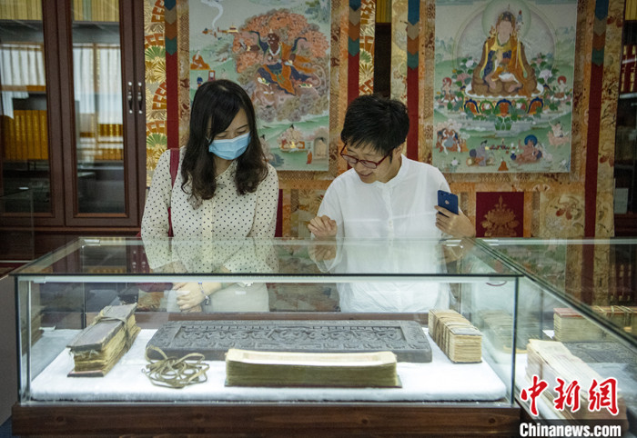 7月8日,四川成都,喜馬拉雅文庫總編輯才讓多吉在《格薩爾》資料中心整理館藏經(jīng)書。中新社記者 劉忠俊 攝