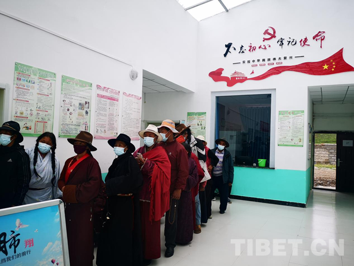 圖為達(dá)日縣建設(shè)鄉(xiāng)排隊(duì)就診的群眾 (組委會供圖)