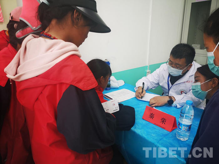 達(dá)日縣建設(shè)鄉(xiāng)義診小分隊(duì)到達(dá)鄉(xiāng)衛(wèi)生院后,當(dāng)?shù)厝罕娨雅藕瞄L隊(duì)等待就診。為了讓醫(yī)患之間交流順暢,建設(shè)鄉(xiāng)衛(wèi)生院給每位義診醫(yī)生配備了一名藏語翻譯。在醫(yī)生與當(dāng)?shù)蒯t(yī)務(wù)工作者的通力配合下,實(shí)現(xiàn)了問診清晰、檢查和開藥的準(zhǔn)確傳遞。義診人員克服高原反應(yīng)癥狀,始終保持熱情、耐心、友善的心態(tài)解答病人的咨詢并開出醫(yī)囑,前來就診的群眾拿到醫(yī)囑后領(lǐng)取了免費(fèi)藥品。