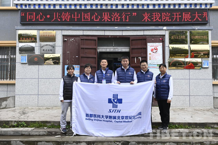 圖為首都醫(yī)科大學附屬北京世紀壇醫(yī)院醫(yī)生在班瑪縣人民醫(yī)院合影 (組委會供圖)