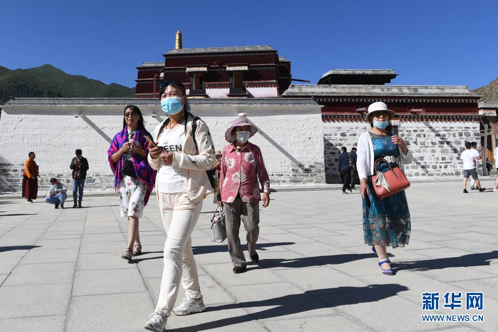 7月12日,游客在拉卜楞寺參觀。新華社記者 陳斌 攝