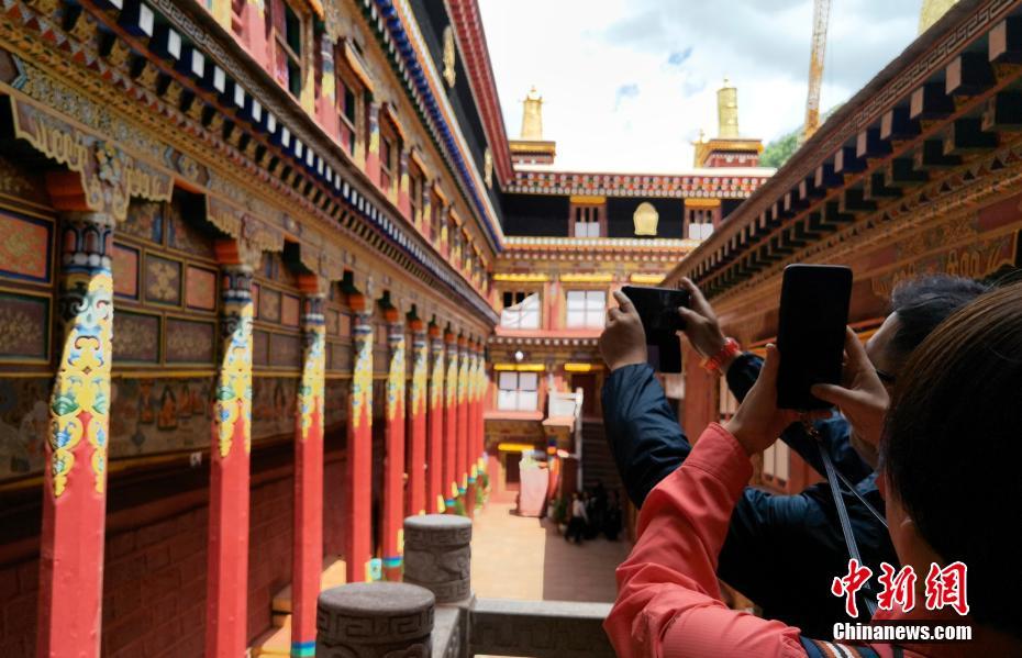 7月20日,四川德格,游客在印經(jīng)院內(nèi)拍照。中新社記者 劉忠俊 攝