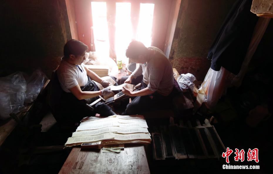 7月20日,四川德格,印經(jīng)院內(nèi)印刷工人印經(jīng)書。中新社記者 劉忠俊 攝