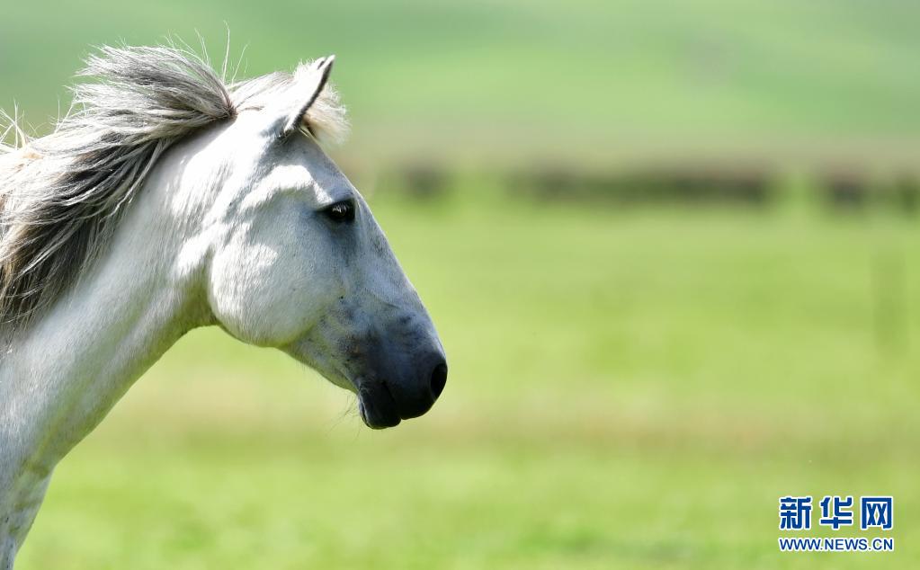 這是7月15日在甘肅瑪曲縣河曲馬場(chǎng)拍攝的河曲馬。新華社記者 陳斌 攝