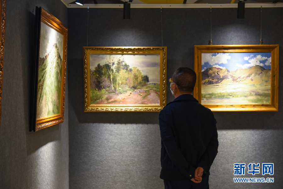 展覽現(xiàn)場,觀眾正在欣賞展出的作品。新華網(wǎng) 齊雨萌 攝