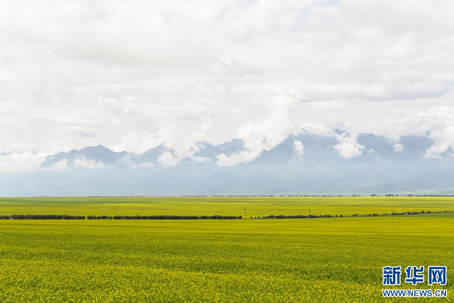 7月1日在青海省海北藏族自治州門源回族自治縣拍攝的油菜花田(無人機(jī)照片)。新華社記者 張龍 攝