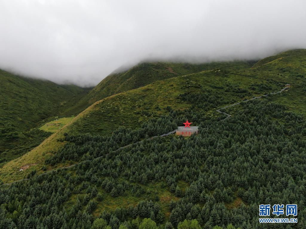 8月8日在青海省果洛藏族自治州班瑪縣境內拍攝的一處觀景臺(無人機照片)。新華社記者 李占軼 攝