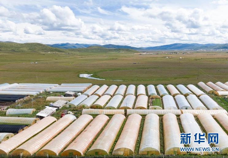 這是四川省阿壩藏族羌族自治州紅原縣邛溪鎮(zhèn)熱坤村的蔬菜大棚(8月13日攝,無(wú)人機(jī)照片)。新華社記者 江宏景 攝
