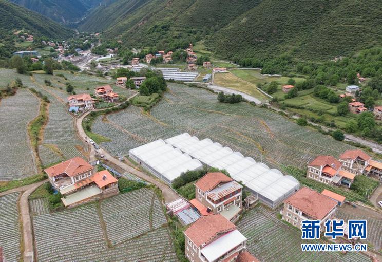 這是四川省阿壩藏族羌族自治州馬爾康市松崗鎮(zhèn)丹波村的蔬菜基地(8月12日攝,無(wú)人機(jī)照片)。新華社記者 江宏景 攝