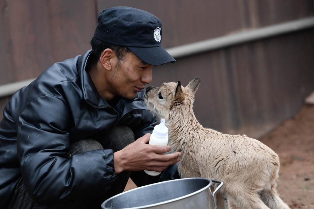 在可可西里索南達(dá)杰保護(hù)站,修建了野生動物救助中心。巡山隊(duì)員們義務(wù)當(dāng)起“奶爸”,照顧著與羊群走失、失去“媽媽”的藏羚羊幼仔。