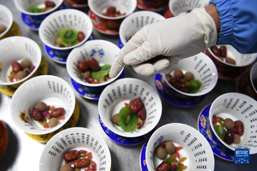 工作人員給蓋碗茶配料供游客品嘗(9月11日攝)。新華社記者 陳斌 攝