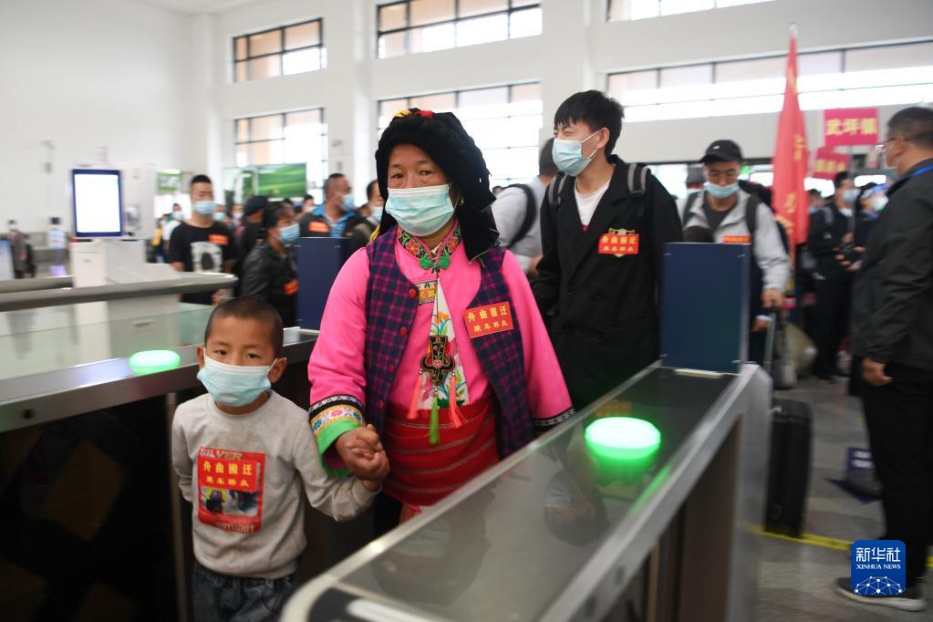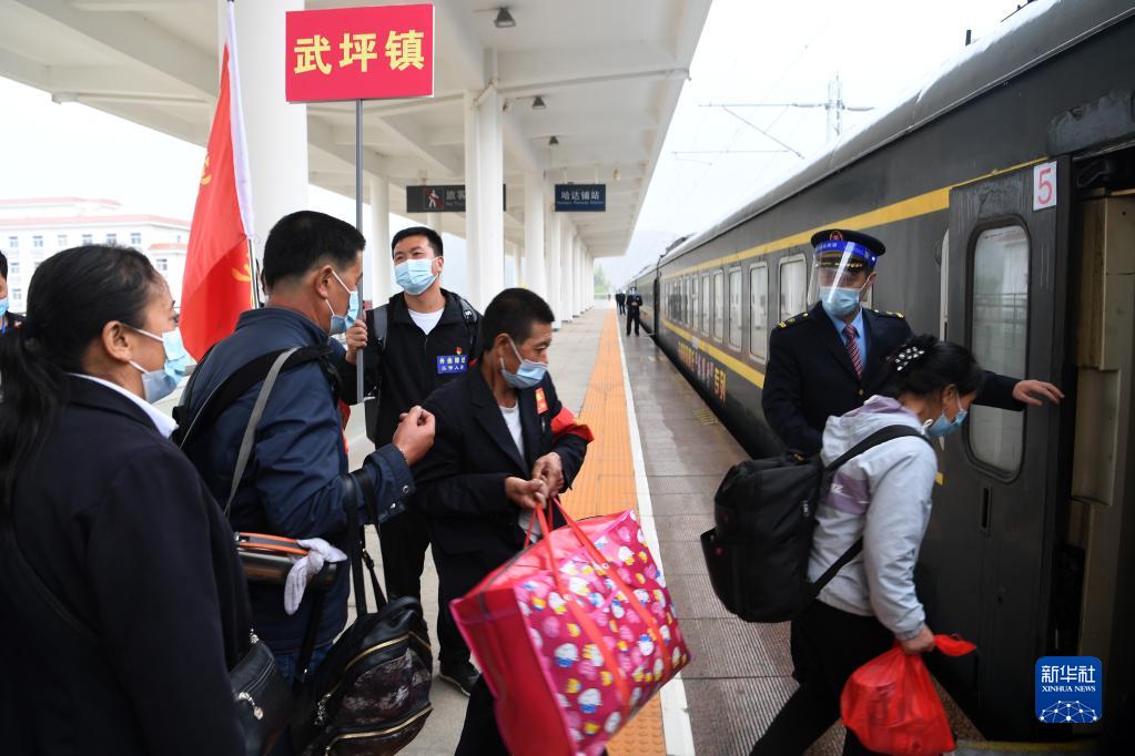 9月24日,在甘肅省宕昌縣哈達(dá)鋪火車(chē)站,舟曲避險(xiǎn)搬遷居民進(jìn)站乘車(chē)。新華社記者 范培珅 攝