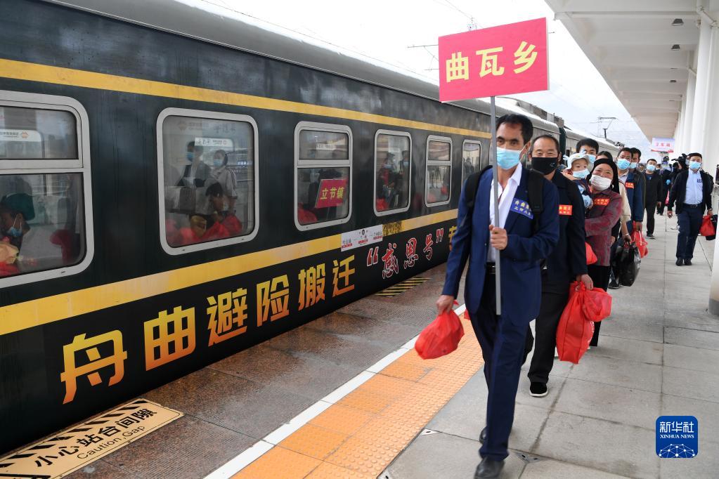 當(dāng)日,甘肅省甘南藏族自治州舟曲縣9個(gè)鄉(xiāng)鎮(zhèn)的200戶500余名居民乘坐中國(guó)鐵路蘭州局集團(tuán)有限公司開(kāi)行的舟曲避險(xiǎn)搬遷“感恩號(hào)”專(zhuān)列前往蘭州新區(qū)安家。據(jù)介紹,今年以來(lái),甘肅省啟動(dòng)舟曲縣地質(zhì)災(zāi)害避險(xiǎn)搬遷工作,計(jì)劃年底前搬遷770戶2960人到蘭州新區(qū)安家,此次搬遷的200戶居民是首次借助鐵路專(zhuān)列運(yùn)輸形式實(shí)施搬遷。
