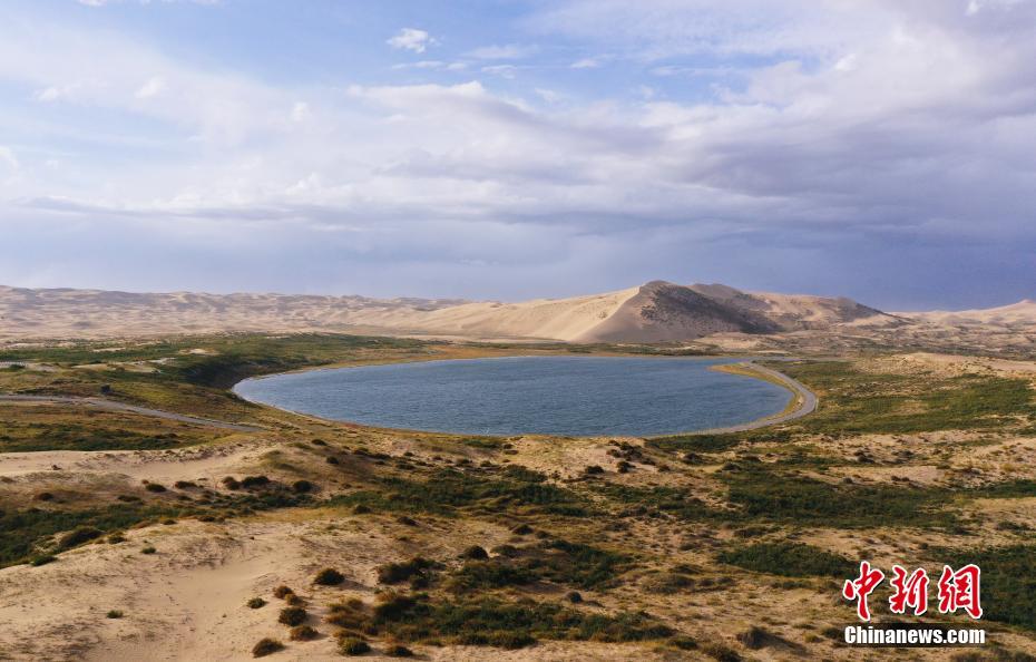9月27日,航拍青海省海北藏族自治州海晏縣關停的青海湖沙島景區(qū)內的太陽湖。(無人機照片) 中新社記者 馬銘言 攝