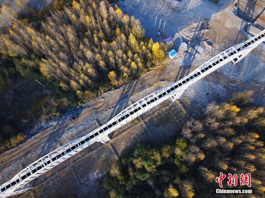10月16日,航拍青海省海南藏族自治州貴德縣拉西瓦灌溉工程中建設(shè)的渡槽。(無(wú)人機(jī)照片) 中新社記者 馬銘言 攝