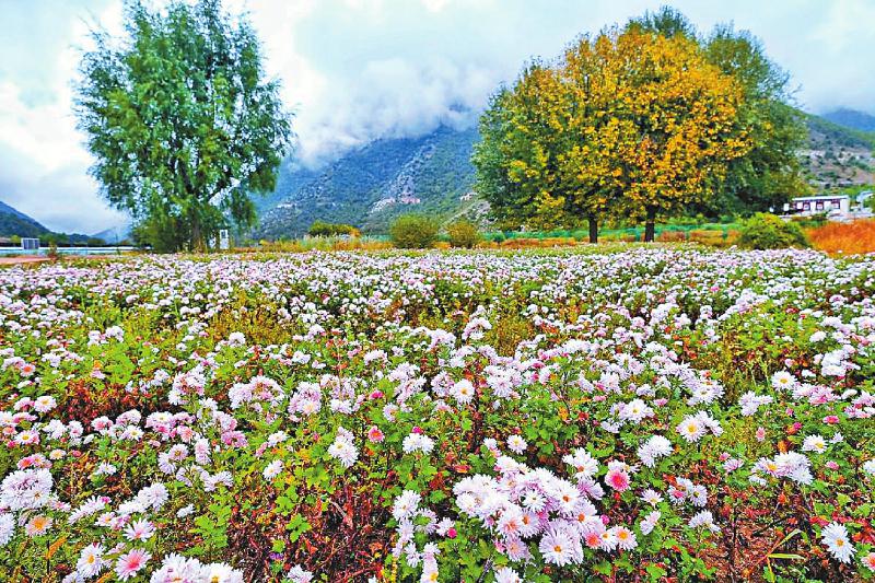 雖入秋已久,但走進位于茨巫鄉(xiāng)的得榮縣中藏藥材種苗基地,一片花海十分炫目。“那是藥菊?!被丶夹g負責人徐汝平操著云南口音介紹。他是云南農(nóng)業(yè)龍頭企業(yè)、麗江華麗生物開發(fā)有限公司的代表,來得榮已有兩年多。