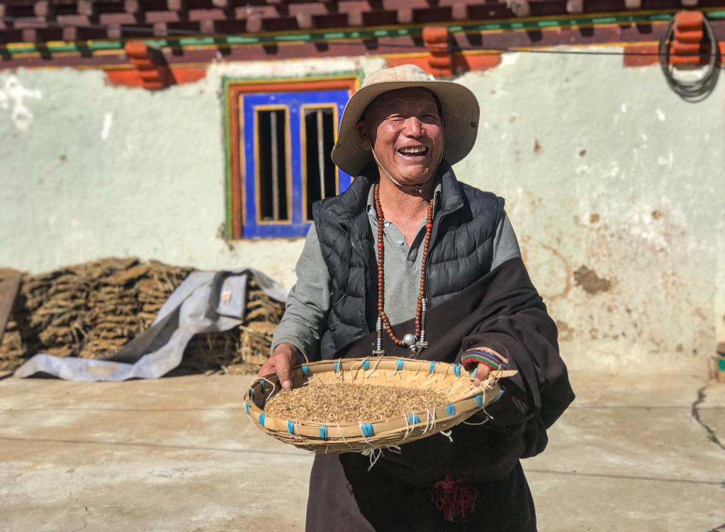 對(duì)于洛絨達(dá)瓦一家來(lái)說(shuō),用青稞粉做成的糌粑,是他們的主要食物。洛絨達(dá)瓦家里有20多畝地,其中有15畝就用來(lái)種植青稞,產(chǎn)量在5000斤左右。