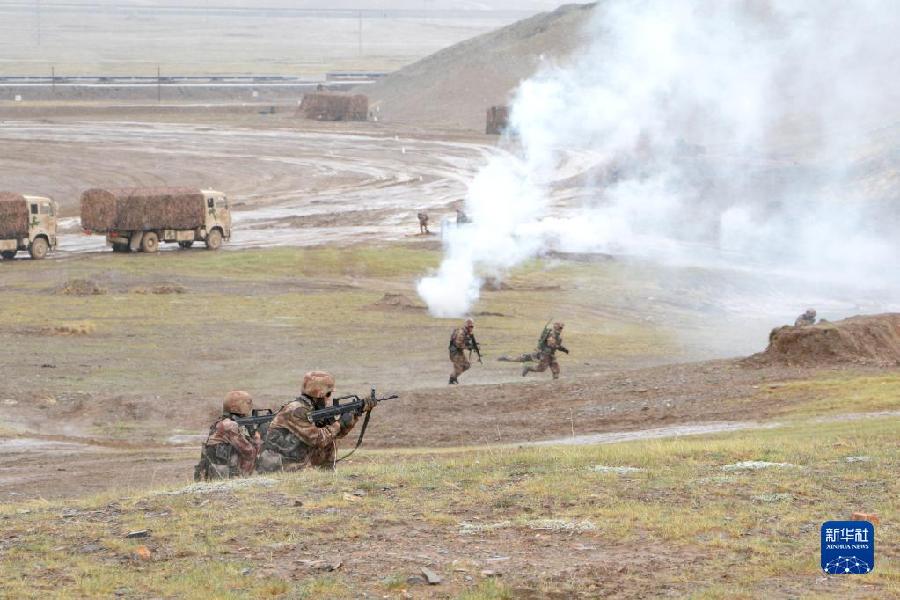 聯(lián)勤保障部隊(duì)汽車運(yùn)輸某團(tuán)一營(yíng)一連參加高原駐訓(xùn)時(shí),在行車途中組織官兵進(jìn)行防衛(wèi)演練(2020年6月16日攝)。新華社發(fā)
