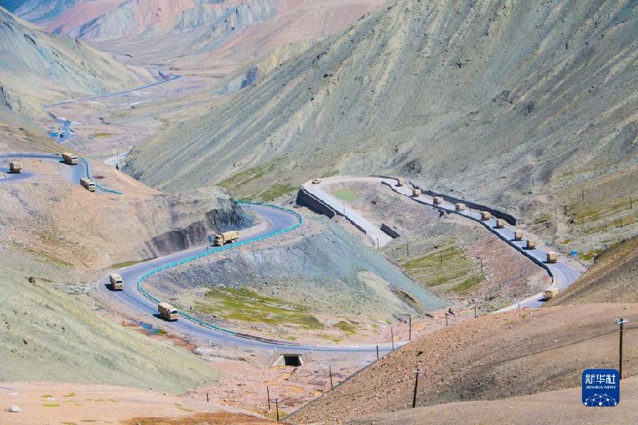 聯(lián)勤保障部隊(duì)汽車運(yùn)輸某團(tuán)一營(yíng)一連在執(zhí)行運(yùn)輸任務(wù)(2020年8月7日攝)。新華社發(fā)