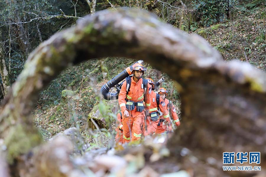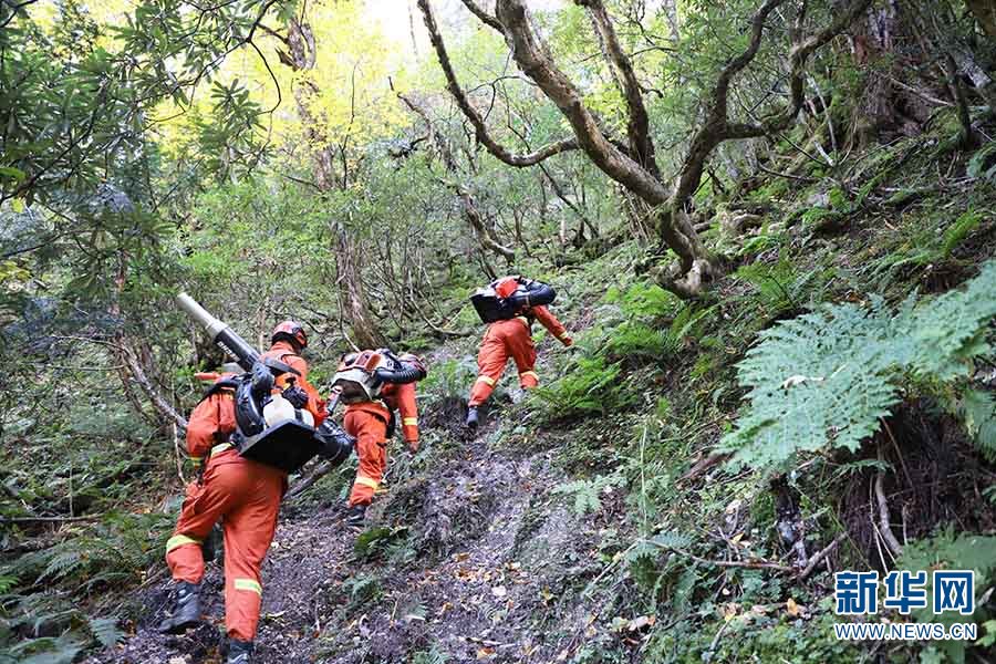 森林消防員開展攜裝巡護(hù)(攝于11月5日)。新華網(wǎng)發(fā)(云南省森林消防總隊(duì)迪慶大隊(duì)供圖)