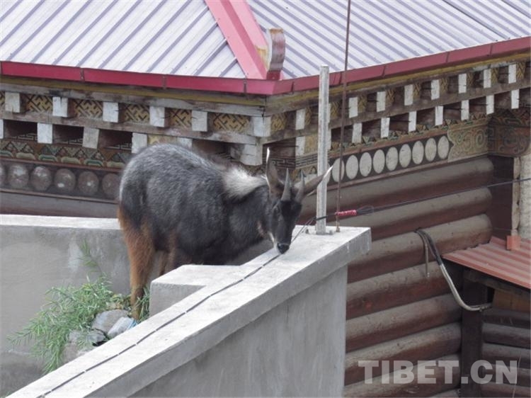 除了寄養(yǎng)在根秋澤仁家的雪豹,目前真達鄉(xiāng)還救助了一只不滿周歲的白唇鹿,寄養(yǎng)在護林員多加家里。祝修濤介紹,今年5月中旬,護林員在巡山的時候發(fā)現(xiàn)了這只白唇鹿,“當時它才剛剛能走,它的母親不知去向。隊員們就把它救助回來,用牦牛奶喂養(yǎng)長大,現(xiàn)在它可以吃青稞了。等它再長大一些,我們會把它放歸山林。”