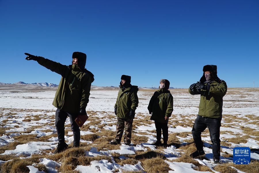 12月3日,祁連山國(guó)家公園沙龍灘管護(hù)站生態(tài)管護(hù)員楊有財(cái)用望遠(yuǎn)鏡觀測(cè)。新華社記者 耿輝凰 攝