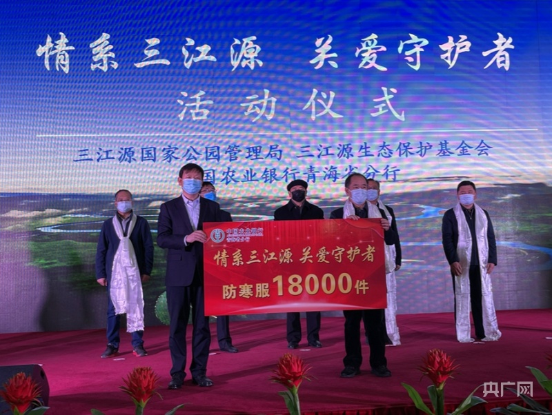 12月9日,三江源生態(tài)保護基金會、三江源國家公園管理局聯(lián)合中國農業(yè)銀行青海省分行在青海省科技館共同舉辦“情系三江源 關愛守護者”公益捐贈活動。本次活動旨在切實為三江源生態(tài)管護員解決御寒問題,宣傳三江源“中華水塔”生態(tài)保護、引導社會愛心募捐。