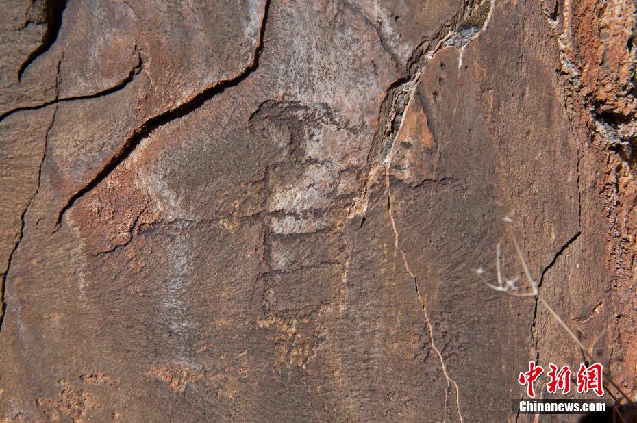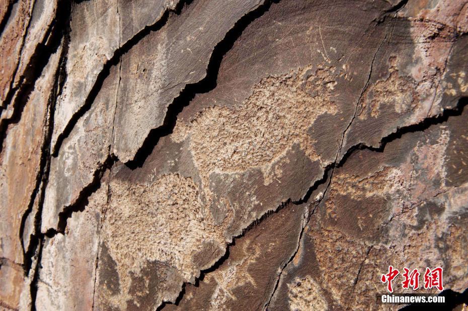 圖為此次發(fā)現(xiàn)的古巖畫遺存。(12月17日拍攝) 中新社發(fā) 江巴然丁攝