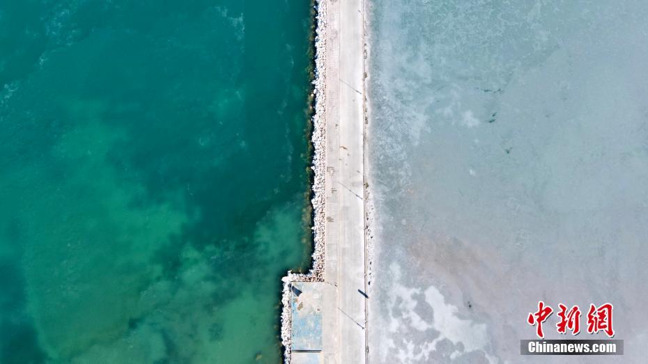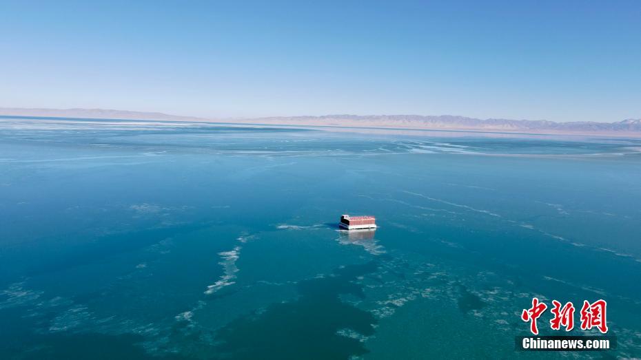 12月21日,航拍冬日青海湖。冬日青海湖周圍的積雪將湛藍(lán)的湖面包裹起來,不斷上凍的湖面猶如一面鏡子。(無人機(jī)照片) 中新社記者 李江寧 攝