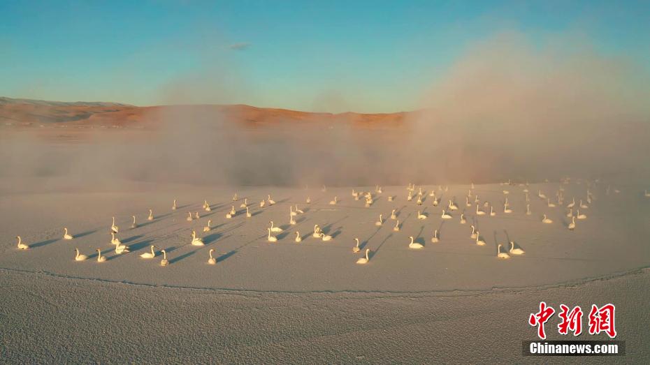 青海湖畔大天鵝集體“泡湯”畫(huà)面唯美