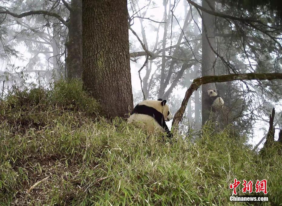 紅外相機(jī)拍攝到的野生大熊貓。平武縣融媒體中心供圖