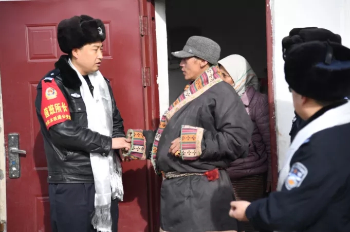 2020年1月,鄭天海帶領(lǐng)民警到鐵路沿線牧民家中開展幫扶慰問(資料照片)。 新華社發(fā) 高慎陽 攝