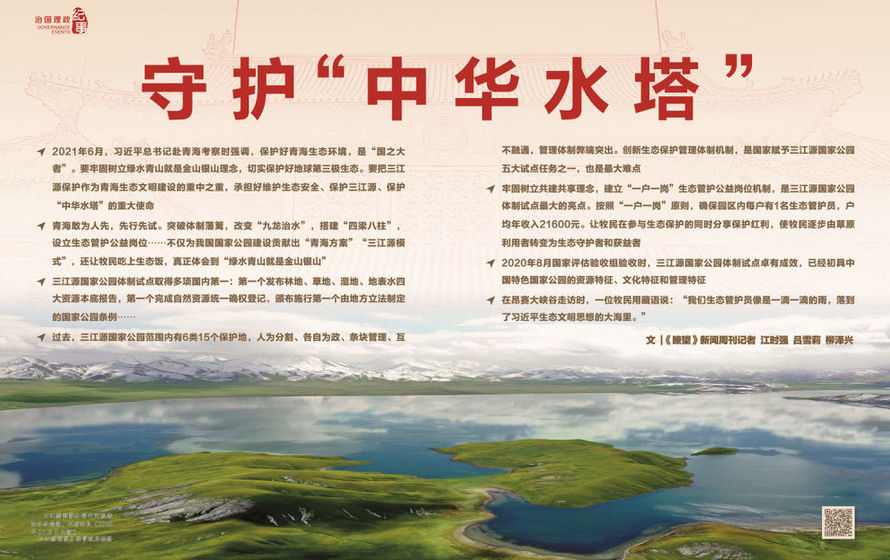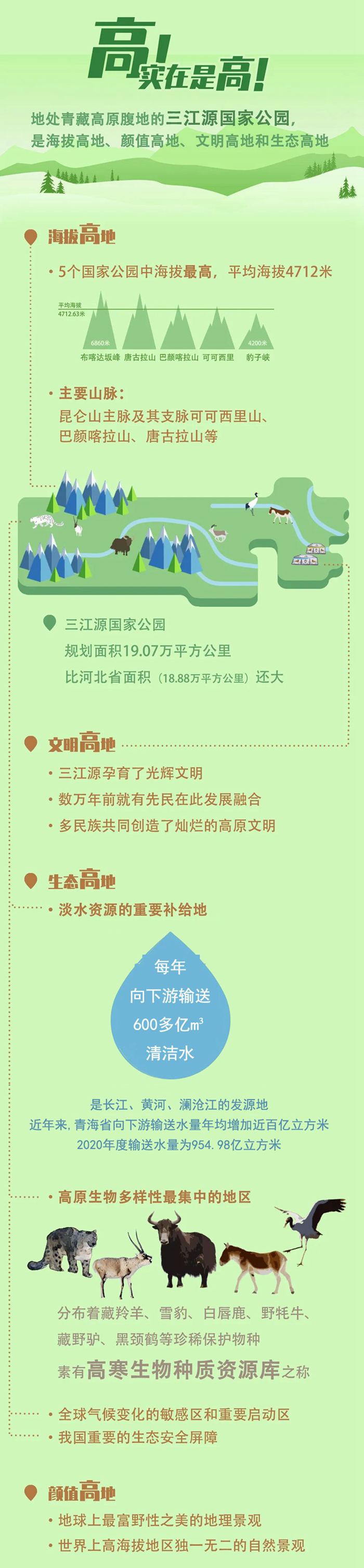 2021年6月,習(xí)近平總書記赴青??疾鞎r強(qiáng)調(diào),保護(hù)好青海生態(tài)環(huán)境,是“國之大者”。要牢固樹立綠水青山就是金山銀山理念,切實保護(hù)好地球第三極生態(tài)。要把三江源保護(hù)作為青海生態(tài)文明建設(shè)的重中之重,承擔(dān)好維護(hù)生態(tài)安全、保護(hù)三江源、保護(hù)“中華水塔”的重大使命。要繼續(xù)推進(jìn)國家公園建設(shè),理順管理體制,創(chuàng)新運(yùn)行機(jī)制,加強(qiáng)監(jiān)督管理,強(qiáng)化政策支持,探索更多可復(fù)制可推廣經(jīng)驗。