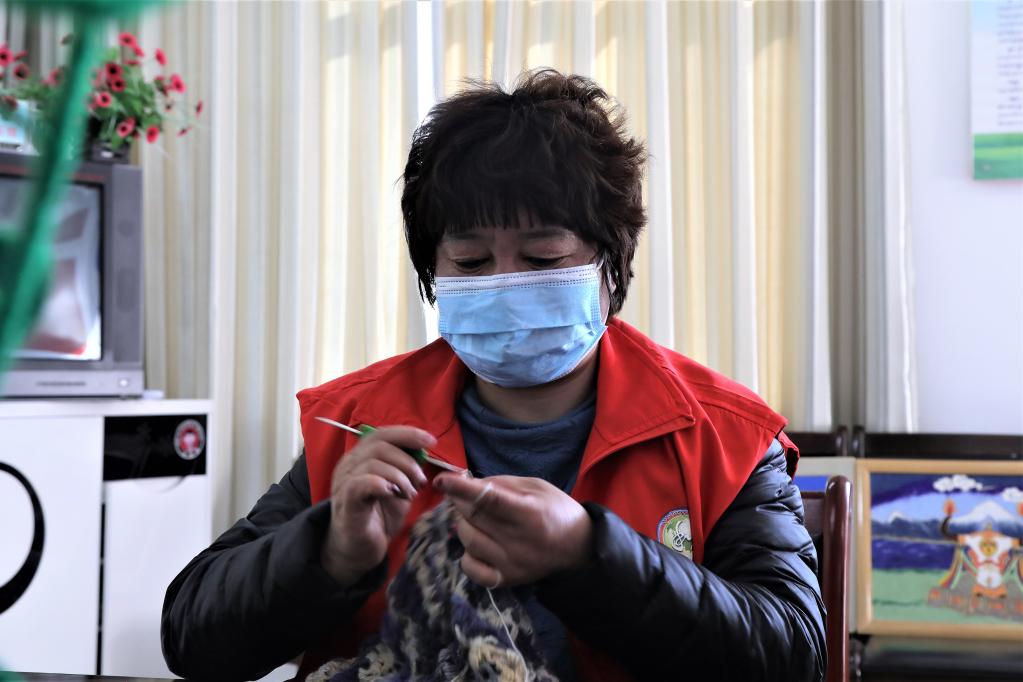 在社區(qū)“石榴籽家園”里,各民族婦女利用閑暇時(shí)間學(xué)習(xí)鉤織、掐絲唐卡、十字繡等技藝。藏族婦女茍曉紅說:“我們制作的抱枕、坐墊、裝飾畫等手工藝品在線上線下銷售,讓我們?cè)诩议T口掙到了錢。”