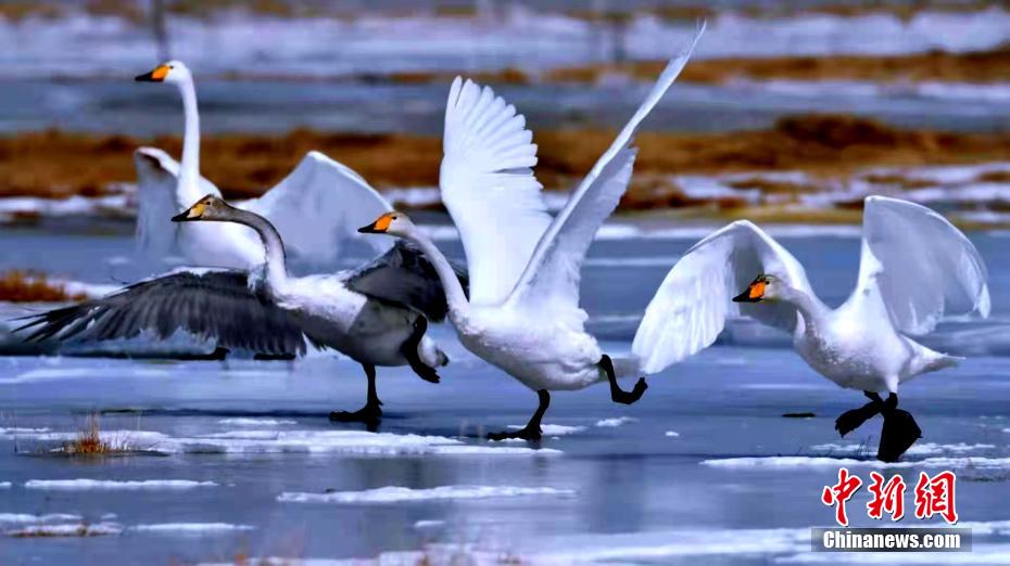 新年伊始,攝影愛(ài)好者在青海湖西岸的黑馬河拍到成群大天鵝,冰面散步、水中游弋、展翅飛翔,成為草原冬日里獨(dú)特的景致。[詳細(xì)]