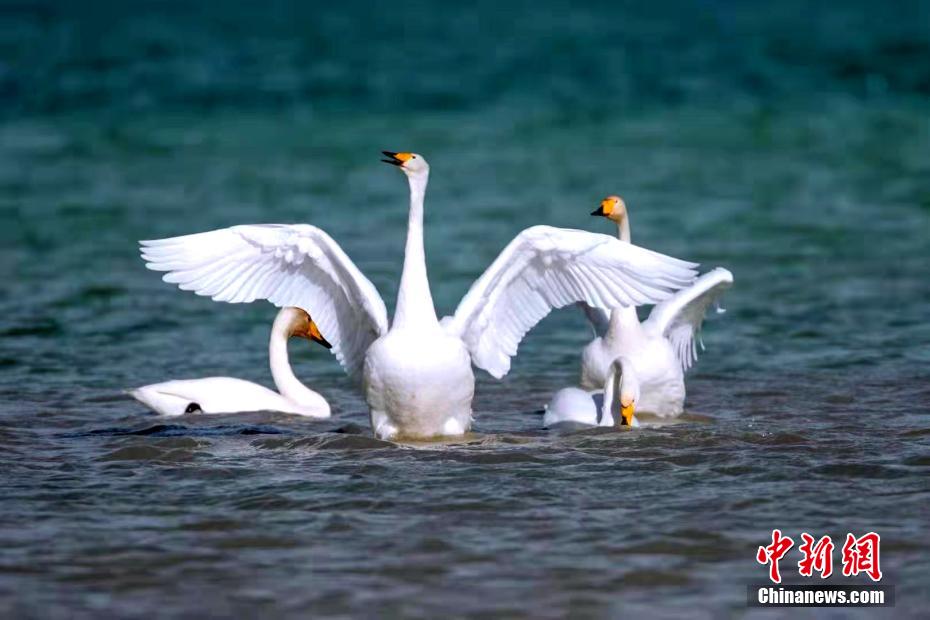 青海湖畔大天鵝集體“泡湯”畫(huà)面唯美