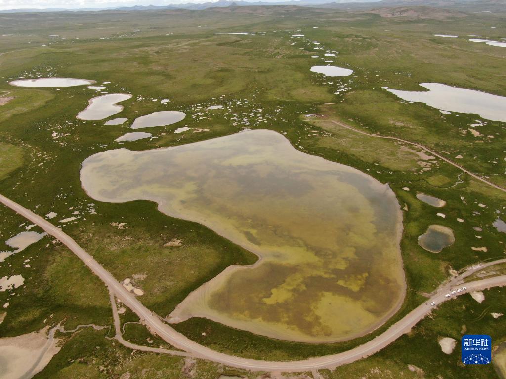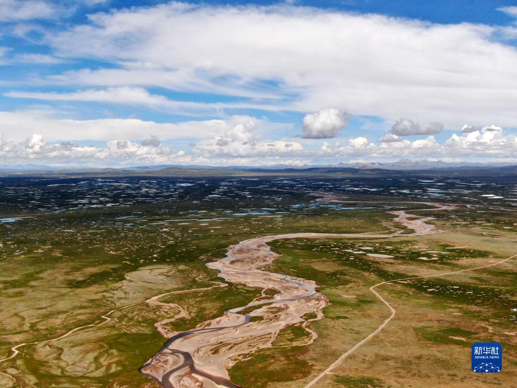這是2021年7月23日拍攝的長江源地區(qū)的查旦濕地(無人機照片)。新華社記者 張龍 攝
