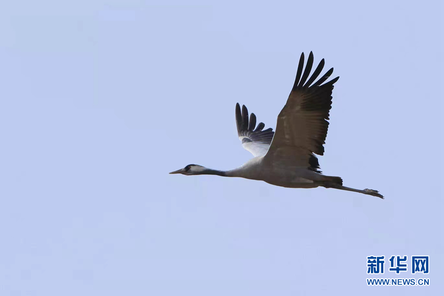 攝影愛好者在都蘭縣巴隆鄉(xiāng)境內(nèi)拍攝到的灰鶴。新華網(wǎng) 松太加 攝