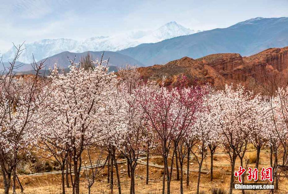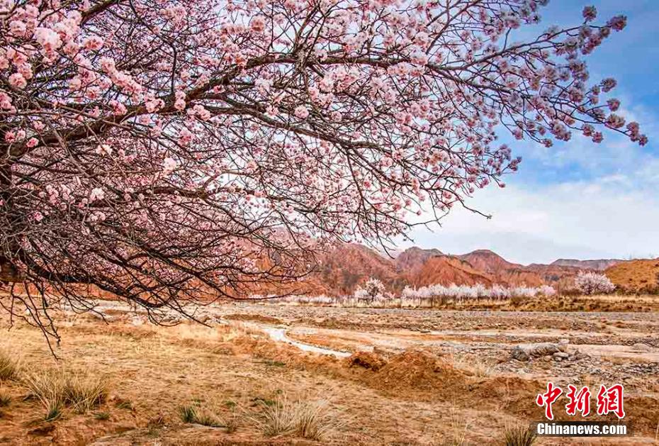 陽春三月,黃河岸畔,素有“高原小江南”之稱的青海省海南藏族自治州貴德縣尕讓鄉(xiāng)阿什貢村的杏花開滿了枝頭,丹霞地貌與杏林互映,五彩繽紛,高原大地生機盎然。 趙海梅 攝