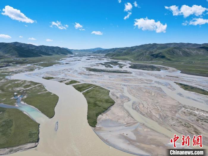 在青海省果洛藏族自治州班瑪縣境內(nèi)拍攝的瑪可河(無(wú)人機(jī)照片)。新華社記者 張龍 攝